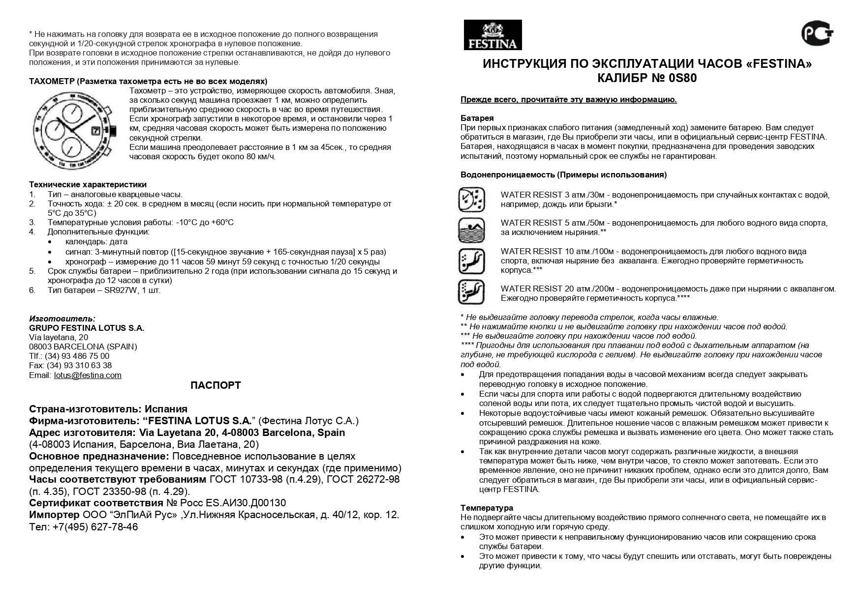 Инструкция к часам Festina и Lotus