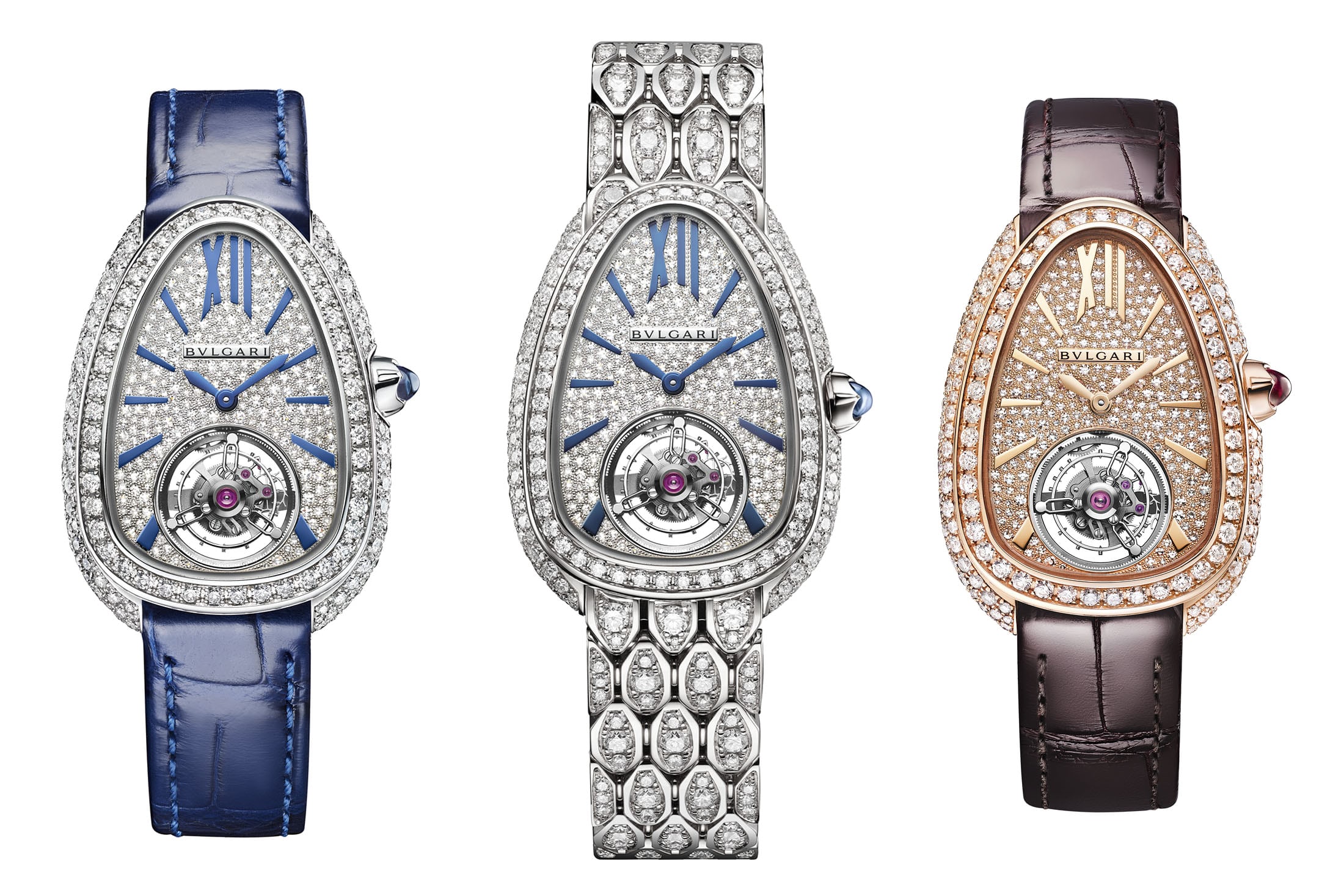 В прошлом году в Baselworld Bulgari выпустила Serpenti Seduttori, версию культового Serpenti с одним ремешком и браслетом. Serpenti Seduttori - бриллианты весом 5 карат, а в версии браслета - более 7,5 карат.